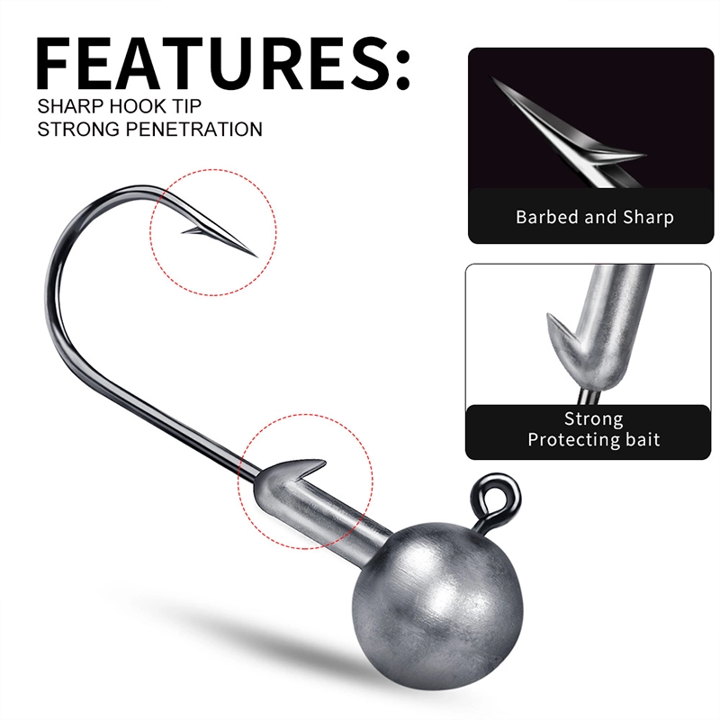 • Premium Quality: Each jig head hook is crafted from high-quality materials, offering superior strength and durability. The sharp, reliable points ensure quick penetration and a secure hold, reducing the chance of fish escaping.